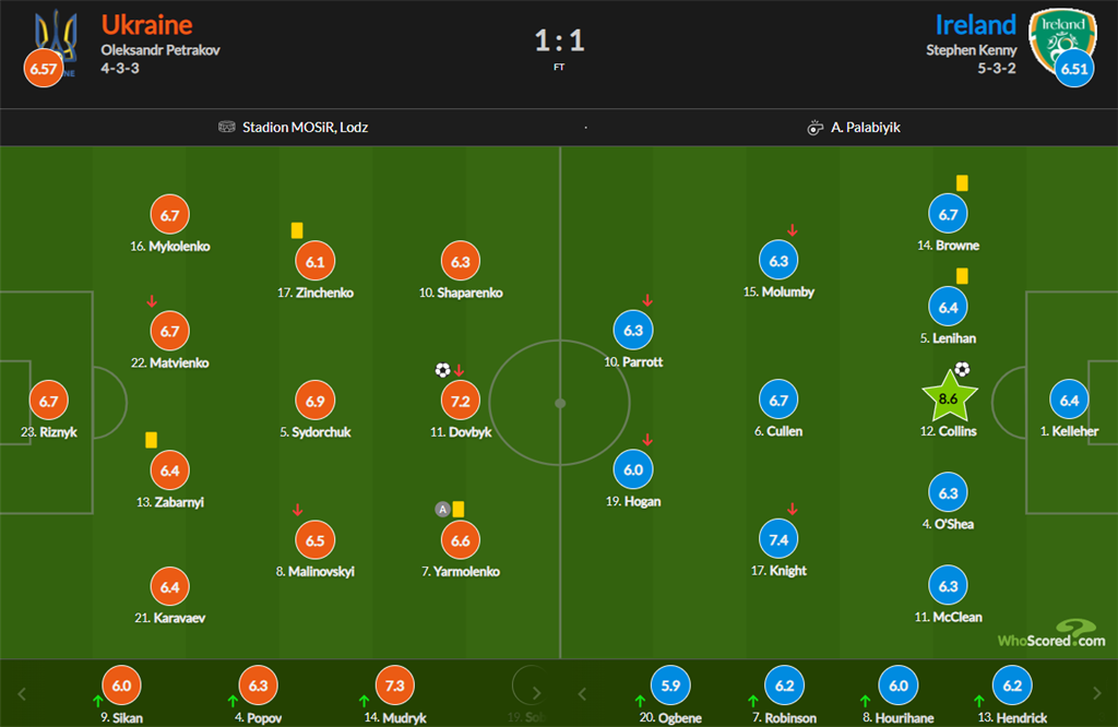 Найкращим ж гравцем матчу за оцінкою порталу став центрбек суперників Нейтан Коллінз, який відзначився забитим м'ячем у наші ворота — 8.6 балів.