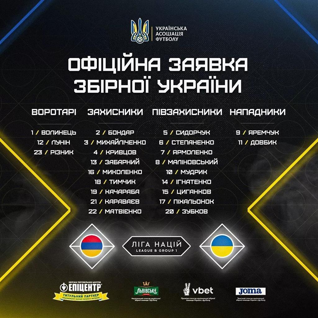 Тренерський штаб "синьо-жовтих" на чолі з Олександром Петраковим оголосили перелік із 23 виконавців, які матимуть можливість вийти на поле Республіканського стадіону ім. В. Саркісяна у місті Єреван.