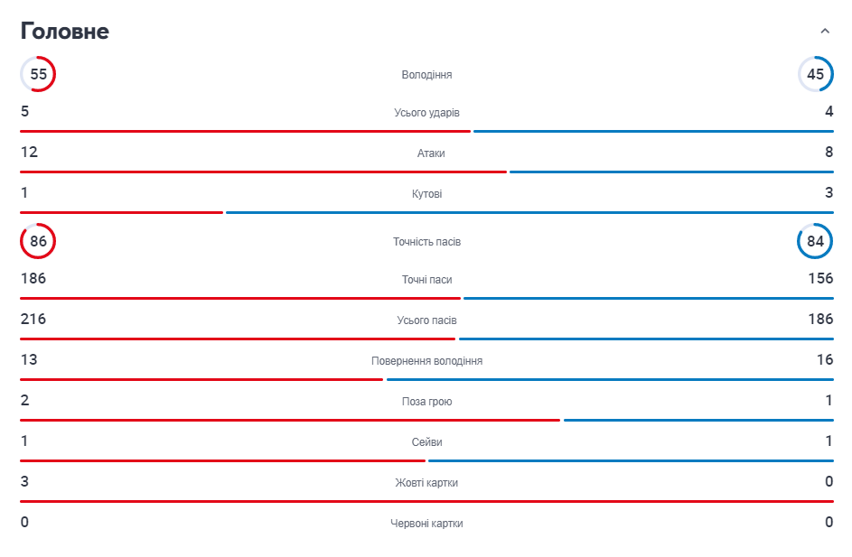 Статистика першого тайму: