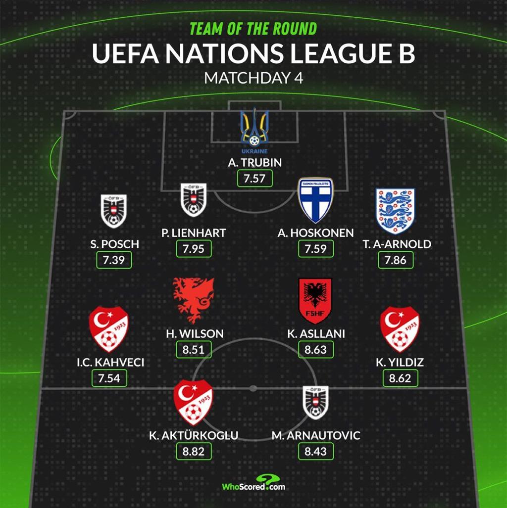 Статистичний портал WhoScored представив символічну збірну минулого четвертого туру групової стадії Ліги націй у дивізіоні В.