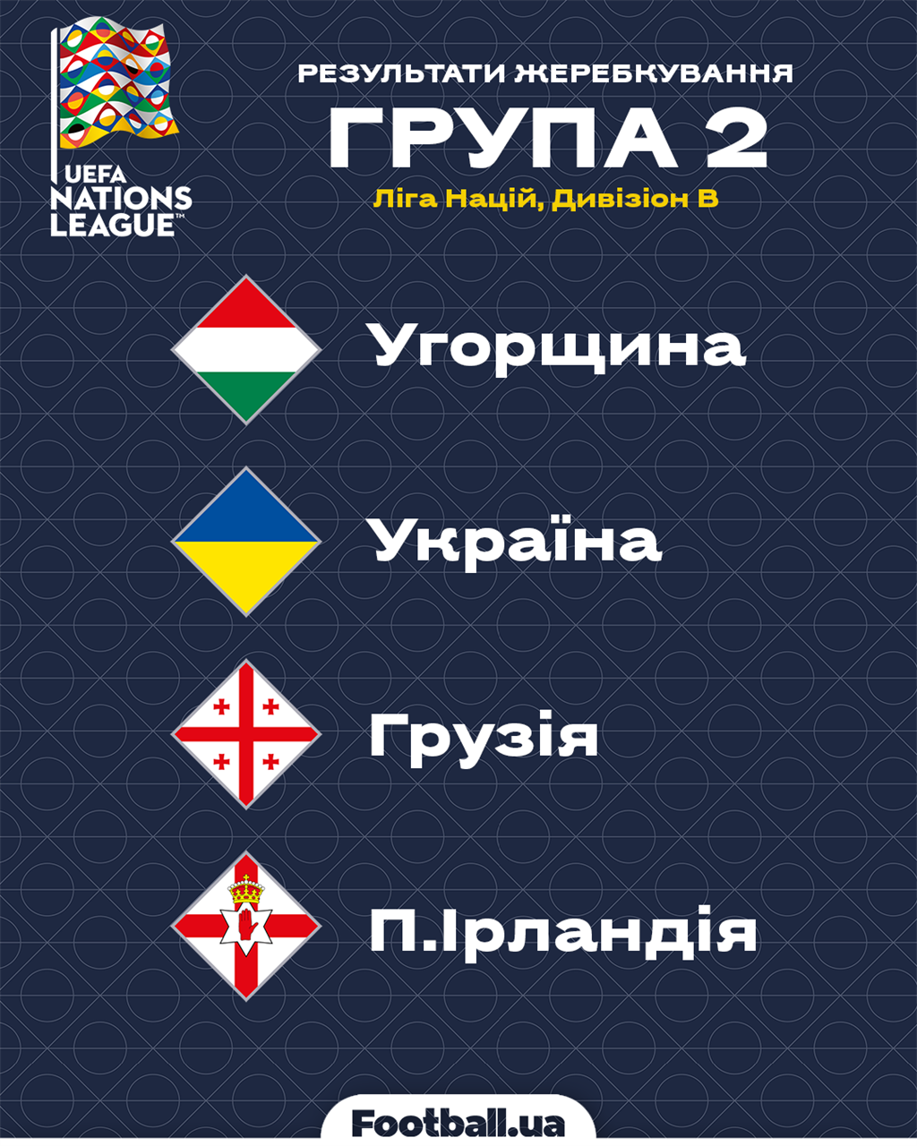 Так, за результатами жеребкування підопічні Сергія Реброва потрапили до групи В2, де їхніми суперниками стануть збірні Угорщини, Грузії та Північної Ірландії.