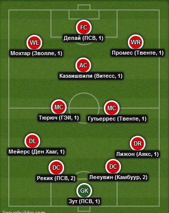 - Лучшая атака: ПСВ (11), Зволле, Твенте (по 10)