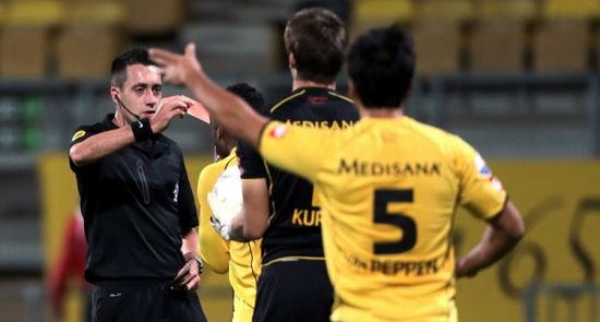 Если в Девентере состоялся самый голевой матч сезона (7 мячей ни в одном из 73-х предыдущих матчей забито не было), то в Керкраде состоялась шестая «сухая» ничья в новом сезоне. При этом язык не поворачивается назвать поединок Роды и Зволле скучным. Тут было все: и яркие моменты, и страсти, и судейские ошибки, и бесчинства болельщиков и даже разборки с участием одного из тренеров в судейской комнате! Уже в середине первого тайма арбитр матча Деннис Хиглер поставил не самый очевидный пенальти в ворота хозяев (похоже, нарушение если и было, то до штрафной), да еще и удалил Боневачию за фол последней надежды, чем вызвал гнев Рууда Броода. Тренер керкрадцев не преминул зайти в раздевалку арбитров и поговорить с Хиглером. Однако это не подействовало – во втором тайме судья изгнал еще и Демужа за очевидный удар локтем. Франк разбил голову в кровь сопернику, поэтому тут не о чем спорить, но фанаты хозяев так не считали. В знак протеста они забросали поле пластиковыми стаканчиками из-под пива, что послужило причиной для десятиминутной остановки матча. Арбитр даже увел команды с поля и всерьез задумывался о досрочном прекращении поединка. Все же матч продолжился, но Зволле так и не смог вернуться на победный путь, и даже судьи не могут в этом помочь Синим пальцам. Они не смогли воспользоваться ни пенальти, ни численным большинством.