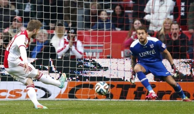Тон хорошей атмосфере задал президент УЕФА Мишель Платини, прибывший в столицу Нидерландов для вручения премии Йохану Кройффу за неоценимый вклад в развитие футбола. Продолжилось все двумя быстрыми голами Лассе Шене с пенальти, которые и предопределили исход противостояния. Сказалось отсутствие дисквалифицированного центрбека Фризов Кенни Отигбы, без которого в обороне команды Ван Бастена царил хаос. Первый 11-метровый привез Джои ван ден Берг, как раз и подменявший Отигбу, второй – Свен Кум, задевший мяч рукой. В концовке Аякс утроил преимущество, а датчанин Шене оформил свой первый хет-трик в футболке амстердамского клуба.