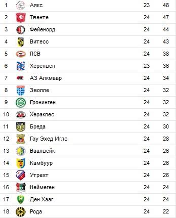 - Лучшая защита: Аякс (20), Твенте (24), Витесс (31)
