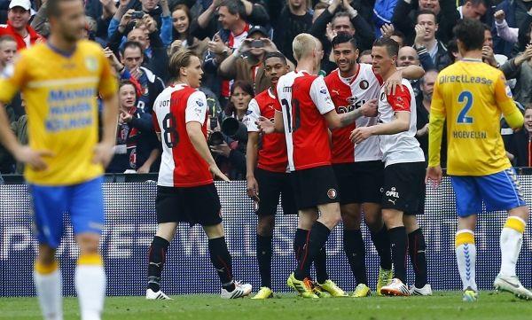 Заветная чемпионская тарелка прибыла в Арнем, чтобы быть в четвертый раз кряду врученной амстердамскому Аяксу. Коллектив Франка де Бура теоретически уже в воскресенье мог отпраздновать законное чемпионство, но звезды не сошлись. Для этого аяксидам необходимо было самим обыгрывать Витесс, да еще и на осечку Фейенорда надеяться. Уже с первым условием не срослось. Под такое дело в Арнем заглянуло немало футбольных звезд – почтил своим вниманием битву Витесса и Аякса не только наставник Оранж Луи ван Гаал, но и экс-форвард Орлов Вилфрид Бони (ему устроили официальное прощание) и почему-то Робин ван Перси.