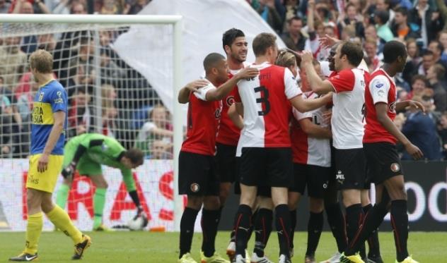 Свою путевку в ЛЧ Фейе оформил в матче против Камбуура, в котором Куман вновь испробовал схему 5-3-2. Правда, в первом тайме она не дала результата – на гол Вормера Олени ответили точным выстрелом Барто. Но с выходом Боэтиуса во второй половине матча игра Фейе преобразилась, и роттердамцы камня на камне не оставили от Камбуура, отгрузив гостям еще четыре мяча. Свой 50-й гол за Фейе в Эредивизи забил Грациано Пелле, который на 99% проиграл бомбардирскую гонку Альфреду Финнбогасону. Ну а в конце матча Рональду Куману устроили роскошные проводы – теперь вести тараканов к победам будет Фред Рюттен…