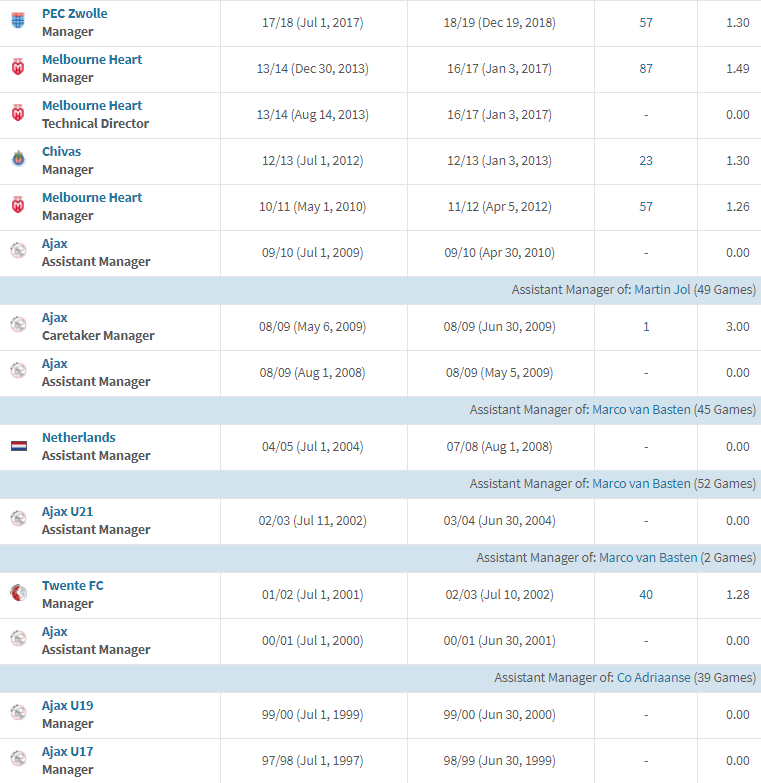 У ван 'т Схіпа, на рахунку якого понад 300 матчів за Аякс в якості гравця, вже був досвід роботи у цьому клубі. Він кілька разів асистував очільникам амстердамців, а одного разу навіть керував командою в якості виконувача обов'язків головного тренера.