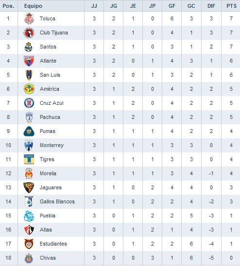 Предлагаем вашему вниманию итоговый обзор третьего тура чемпионата Мексики.