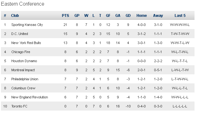 Соседи по турнирной таблице, Хьюстон Динамо и Чикаго Файр, свои матчи также проиграли, отпустив в небольшой отрыв лидеров Востока - Спортинг из Канзас-Сити, Нью-Йорк и Ди Си Юнайтед. Победу столичному клубу принес уже второй в сезоне дубль Майкона Сантоса, а коллектив из Города Ветров подвел звездный новичок Арне Фридрих, отметившийся мячом в свои ворота.