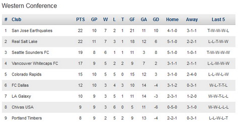 Через пару дней Сан-Хосе "попал" в Ванкувере, в добавленное ко второму тайму время упустив Эрика Хассли, принесшего волевую победу Уайткэпс. Хотя такого конца ничто не предвещало - великолепный Вондо открыл счет, забив свой одиннадцатый мяч в сезоне, но еще до перерыва ганец Гершон Коффи равновесие восстановил. Встреча катилась к мирному исходу, но концентрации для того, чтобы сохранить единицы на табло и оторваться от Реала в борьбе за первое место на Западе калифорнийцам не хватило. Коллектив из Юты благодаря дублю Альваро Саборио остановил Революшн, сравнявшись с Сан-Хосе по количеству набранных очков.