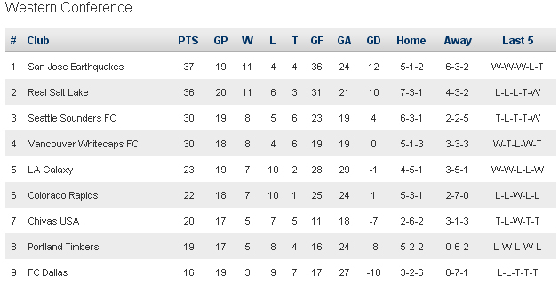 Способствовало прорыву Гэлэкси поражение Колорадо в Сиэттле. Саундерз наконец прервали длительную полосу неудач, сумев сделать результат без своего капитана Фредди Монтеро, которого Зигфрид Шмид оставил на скамейке запасных. В его отсутствие роль лидеров Сиэттла примерили Эдди Джонсон и Мауро Росалес. Экс-игрок Аякса дирижировал действиями своих партнеров в атаке, а форвард нередко оказывался на хороших ударных позициях, но Мэттью Пикенс до определенного момента с угрозами справлялся. Был еще опасный удар Фернандеса, направление которого изменил рикошет, но и это не стало загадкой для опытного кипера Рэпидс.