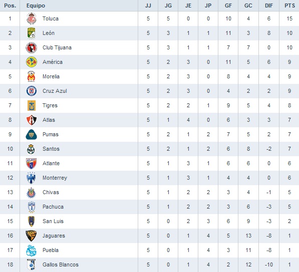 Неожиданный старт Толуки. Команде Энрике Месы удалось выдать впечатляющий старт из пяти побед подряд, что является рекордом для клуба из одноименного города, если брать в расчет короткие чемпионаты, проводящиеся с 1996 года. Тренеру, по всей видимости, наконец-то удалось собрать из хорошего коллектива турнирных бойцов, и даже вынужденная потеря лучшего бомбардира команды уругвайца Ивана Алонсо пока никак не ощущается.