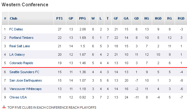 Укрепили свои позиции на Западе Даллас и Лос-Анджелес Гэлэкси, продолжающие вести борьбу за самые высокие места. Техасцы на очень тяжелом поле, над которым "потрудился" сильный дождь, минимально обыграли Сан-Хосе, а калифорнийцы в родных стенах неожиданно даже для самих себя разбили Сиэттл, отгрузив команде Зиги Шмида четыре мяча уже в первом тайме.