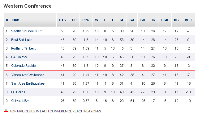 Саундерс не продлили свою победную серию до шести матчей, по делу потеряв очки в Калифорнии. Встреча между двумя грандами Запада не получилась совсем уж захватывающей, но удалась в плане интриги до последних секунд. Заключалась она преимущественно в том, дожмут ли Гэлэкси оставшегося в меньшинстве соперника, или нет. Не дожали, и вынуждены довольствоваться четвертым местом в конференции. Сиэттл, сохранив первую строчку, продолжает претендовать на победу в регулярном чемпионате, имея два матча в запасе перед Реалом и Нью-Йорком, своими ближайшими преследователями.