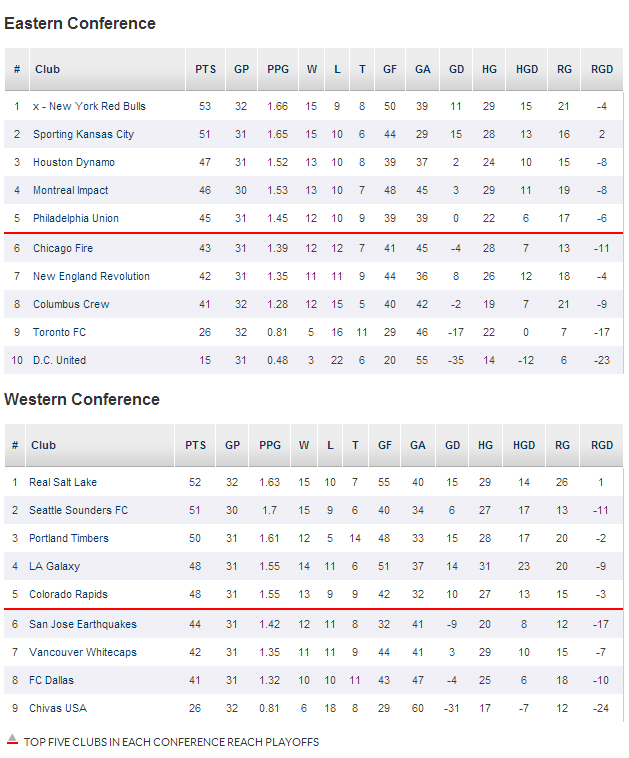 Ванкувер и Даллас фактически завершили свою погоню за счастьем, не сумев выиграть у лидеров своей конференции и безнадежно отстав от Глэлкси и Рэпидс, имеющих в активе по 48 очков. Уайткэпс дважды отыгрывались по ходу домашнего поединка с Портлендом, и были достаточно близки к тому, чтобы вырвать спасительные три балла в концовке, но Донован Риккетс был явно против, потащив опасный выстрел Ли Ян Пйо. Хладнокровно повели себя и арбитры, не став назначать сомнительный одиннадцатиметровый в щекотливой ситуации — Кекута Манне приземлялся на газон в штрафной площади Тимберс с известной долей артистизма.