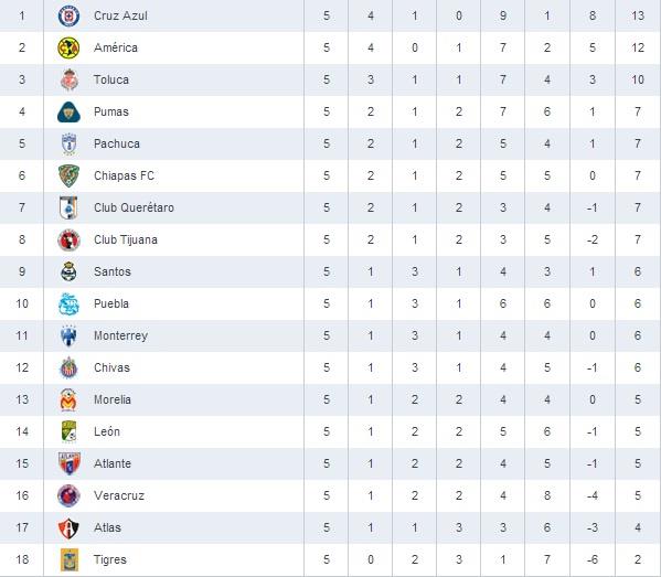 Турнирная таблица (msn.mediotiempo.com)