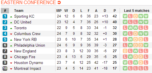 4:1 – все осталось на прежних местах. Первая позиция от Спортинга не ушла, а Коламбус Крю не воспользовался осечкой Торонто.