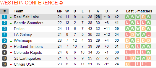 Солт-Лейк набрал прямо-таки крейсерскую скорость в чемпионате, убирая соперников со своего пути. Недавняя сокрушительная победа над одним из лидеров Востока сказанное только подтверждает. На Рио Тинто Стэдиум играть непросто любому оппоненту, а добавляет мотивации сумасшедшая поддержка неистовых болельщиков. Главное противостояние тура превратилось в фестиваль одной команды. И пусть никого не смущает итоговый счет на табло. Хозяева принялись осаждать чужую штрафную уже со стартовым свистком: опасно выглядели проходы Платы и передачи Бекермана. Все опасные моменты у ворот Сиэтла так и остались моментами. Но уже дебют второй половины остался полностью за коллективом Джеффа Кэссара, который просто смял безропотных гостей. Сначала низкорослый Плата подкараулил на дальней штанге навес со стандартного положения в исполнении Малхоллэнда, а позже и сам Люк, воспользовавшись растерянностью защитников, протолкнул снаряд мимо обескураженного Фрея. Секундами позже автор второго взятия ворот прибежал к боковой линии и молотом вдарил в гонг, оповещающий о голе любимой команды.