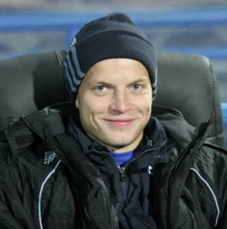 Но еще больше довелось удивляться, читая сводки со спаррингов – среди забивающих было много Гусева. Настолько много, что не снилось даже некоторым бразильцам, купленным с пафосом и за большие деньги. Закономерность такого поворота судьбы объяснялась просто: парень и вправду существенно добавил за дебютный киевский высшелиговый сезон. Еще вчера он радовался 5-му месту во второй лиге, сегодня – 5-е место в высшей. Еще в начале 2003 года дебютант Арсенала начал призываться в молодежную сборную (в первом матче, кстати, сразу же гол туркам забил), а вот уж и дебют в национальной команде нарисовался. 12 июля 2003 года он впервые сыграл за Динамо (кстати, тогда киевляне Волынь разгромили), а уже в третьем матче за новую команду забил команде старой – Арсеналу. Ввиду такого яркого дебюта в составе главного клуба страны Буряк не преминул пригласить 20-летнего игрока и в национальную сборную. 20 августа Олег вышел вместо Калиниченко на второй тайм матча против румын в Донецке. Кстати, по наущению Буряка, прикрывал именно правую бровку. С легкой руки Леонида Иосифовича Гусеву неоднократно довелось «латералить» и в сборной, и позже в клубе. И хотя со временем здравый смысл восторжествовал, и Олега поставили на правый фланг полузащиты – поближе к его стихии, атаке, нет-нет, тренеры и вспомнят о таком его умении. И Блохин иногда ставил его на всю бровку, и Маркевич видел в быстром фланговом игроке панацею от вечной «послелужновской» проблемы с правым защитником. С универсализмом и прилежностью Олега – такие эксперименты не проблема.