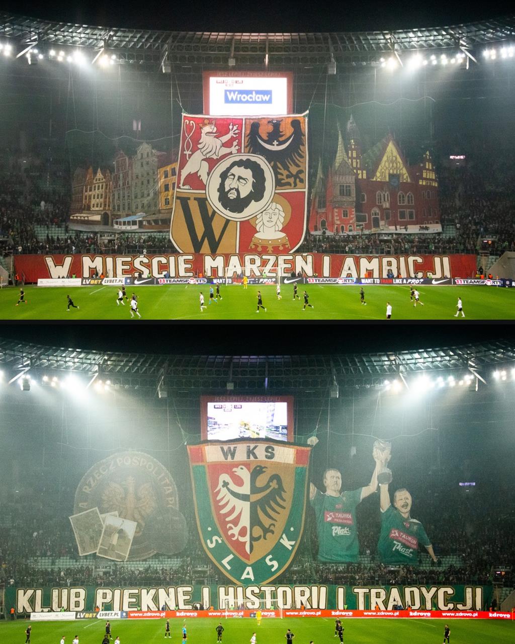 Команди не порадували вболівальників голами, проте вроцлавські фанати розтягнули розкішний банер на трибуні з написом: "В місті мрій та амбіцій". Перфоманс присвячений 75-річчю команди і виглядає просто блискуче.