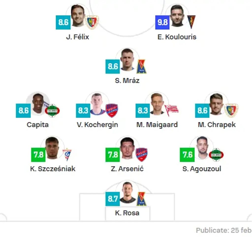 Український півзахисник Ракува Владислав Кочергін потрапив до символічної збірної 22 туру чемпіонату Польщі за версією статистичного порталу SofaScore.