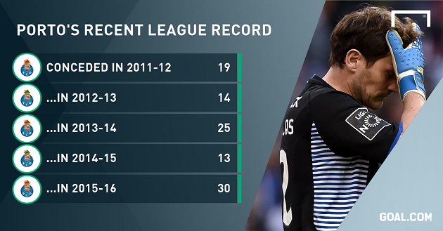 30 пропущенных голов стали худшим результатом для Порту за последних 15 лет. Сам Касильяс продемонстрировал худшее соотношение показателей "количество игр/пропущенные мячи" – испанец пропускал 0.88 гола в каждой игре.