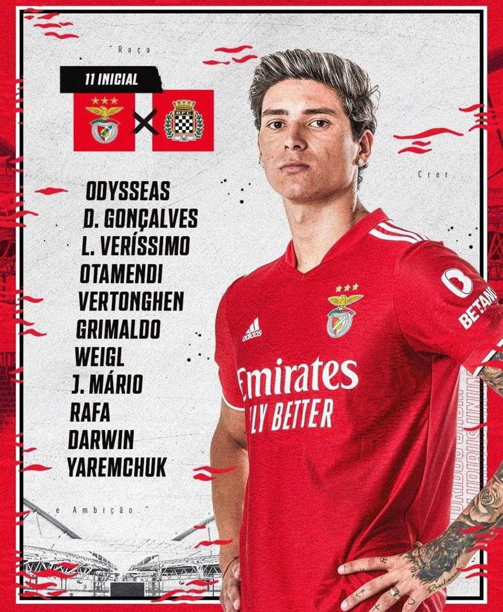 Бенфика: Влахадимос — Лукас, Отаменди, Вертонген — Гонсалвеш, Гримальдо — Вайгль, Мариу, Силва, Нуньеш — Яремчук.