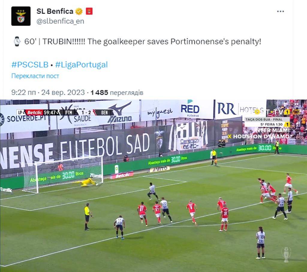 Проте Трубін зумів переграти гравця Портімоненсе на парирував його удар із "позначки", не дозволивши зрівняти рахунок.
