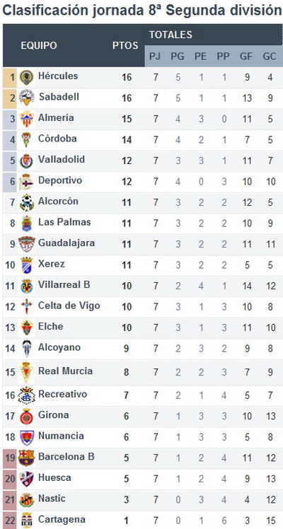 1 –Алкойано, Вальядолид, Жирона, Мурсия, Сельта и Эркулес