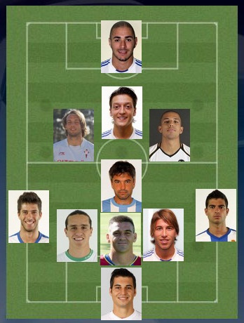 Голкипер. Андрес Фернандес (Осасуна, 3-е попадание в сборную тура). Судьбы у всех складываются по-разному. У Андреса Фернандеса она сложилась таким образом, что он стал одним из открытий Ла Лиги не в семнадцать или в девятнадцать, а в двадцать пять лет. Великолепный «сухой» матч в Сан-Себастьяне, ознаменованный пятью «спасениями»: и болельщики Красненьких снова пели имя вратаря в аэропорту, встречая команду.