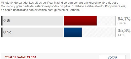 В крайнем матче Мадрида, на последних минутах игры, стадион Сантьяго Бернабеу впервые заглушил свистом песню, посвященную Жозе Моуриньо. Справедливая реакция?