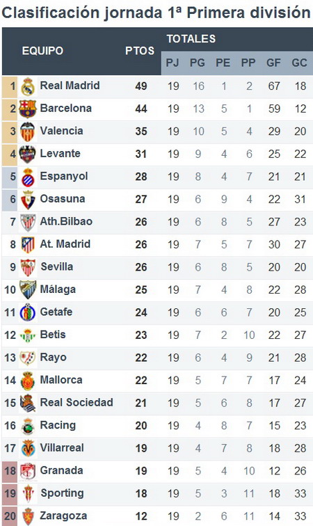 Гранада попрощалась с энтренадором Фабрисиано Гонсалесом Пенеласом, которого на тренерском мостике сменил Абель Ресино. Надо сказать, что Хунта Филиппинцев долгое время не решалась уволить «мистера», выведшего коллектив из Андалусии сначала в Сегунду, а потом и в Примеру – впервые за 35 лет! Последней каплей стало крупное поражение от Эспаньола. Валенсия и Леванте продолжают терять очки, но, несмотря на невзрачную в последнее время игру, по-прежнему находятся в лигачемпионской зоне. Кто бросится в погоню за валенсийцами? Атлетик? Атлетико? Или показательно поигрывающие небольшой, но рельефной мускулатурой Эспаньол с Осасуной?