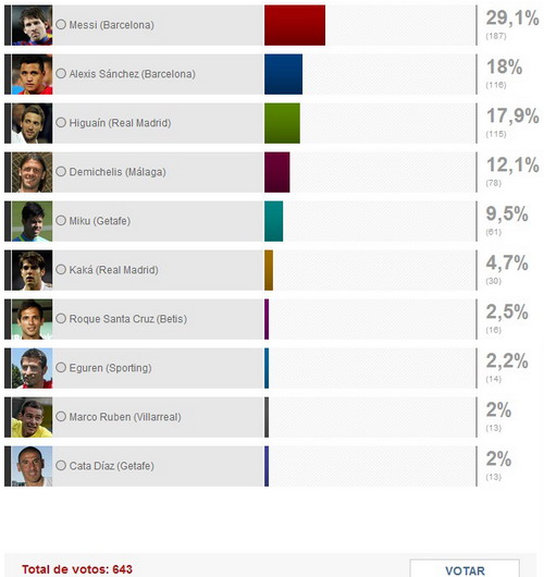 10 – Месси, Даниэль Алвеш (оба – Барселона), Кака (Реал Мадрид)