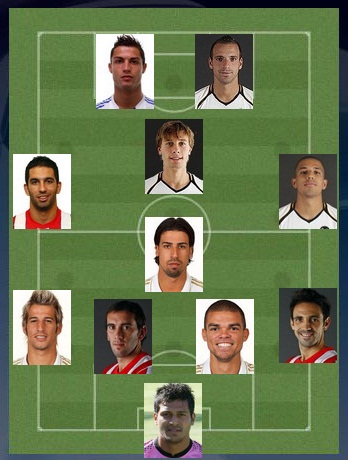 Центральный защитник. Пепе (Реал Мадрид, 3). Практически безупречно (за исключением однажды упущенного Хави) отработал в обороне, выполнив главнейшую задачу: перекрыв кислород Лео Месси. Причем, безо всякого хамства и грубости. Именно после удара Пепе головой Вальдес не сумел зафиксировать мяч, а Пуйоль – выбить игровой инструмент подальше: все это привело в голу Сами Хедиры.