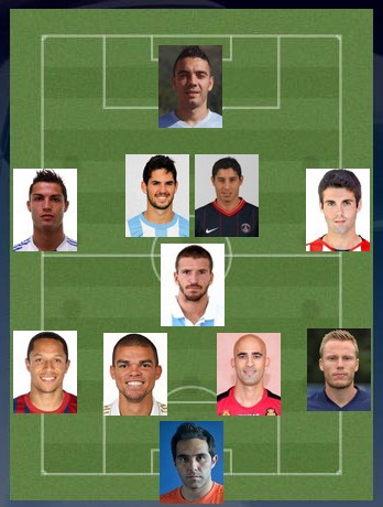 Левый полузащитник. КРИШТИАНУ РОНАЛДУ (Реал Мадрид, 1).Несмотря на внезапно нахлынувшую депрессию, был лучшим в составе Сливочных в матче против Гранады. Пополнил свой голевой счет двумя мячами, и получил от многих СМИ, курирующих испанский футбол, титул MVPтура. На данный момент – самая обсуждаемая фигура в Испании: благодаря постматчевому интервью, которое вмиг стало скандальным и тут же обросло всевозможными слухами.