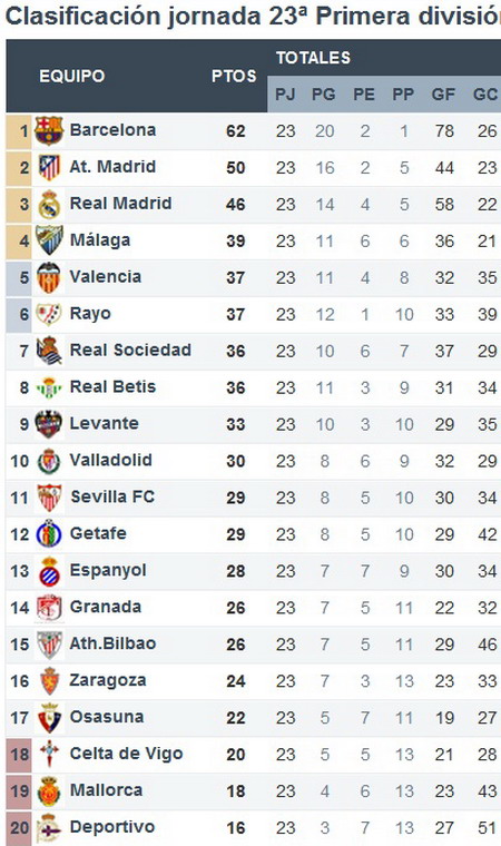 А вот Атлетико в последнее время действует не слишком-то удачно: в минувший уик-энд Матрасники уступили Райо Вальекано в Малом мадридском дерби (хотя, это сложно назвать дерби – между Атлети и Райо очень хорошие отношения на уровне директората). «Не вышли на первый тайм», — объяснил потерю очков Диего Симеоне. Что тут скажешь? Надо уж как-то выходить, если судья свистнул: Атлетико отстает от Барсы уже на 12 очков, а Мадрид сократил отставание от Фалькао и компании на 4 пункта. Кто там хочет быть в Примере третьей силой?