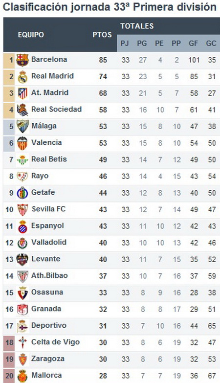 · Чилийский энтренадор Мануэль Пеллегрини одерживает 166-ю победу в Ла Лиге с Вильярреалом, Мадридом и Малагой. Из иностранных тренеров, работавших с испанскими клубами, столько же побед имеет на своем счету француз Марсель Доминго (Эспаньол, Атлетико); а большее количество выигранных матчей – лишь пятеро: словак Фердинанд Даучик (Барселона, Атлетик, Атлетико, Бетис, Мурсия, Севилья, Сарагоса, Эспаньол) – 234 виктории, валлиец Джон Тошак (Сосьедад, Мадрид, Депортиво, Мурсия) – 200, аргентинец Эленио Эррера (Вальядолид, Атлетико, Малага, Депортиво, Севилья, Барселона) – 200, голландец Йохан Круифф (Барселона) – 179 и серб Радомир Антич (Сарагоса, Мадрид, Атлетико, Овьедо, Барселона, Сельта) – 172.
