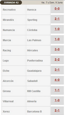 13 – Коро (Эльче), Наталио (Нумансия), Давид Родригес (Хихон, 1 с пенальти)