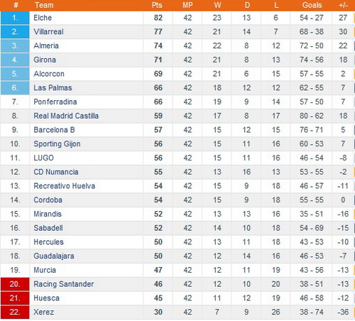 Теперь же начинается самое интересное – четыре клуба, занявшие в серебряной категории испанского футбола места с третьего по шестое, будут бороться в плей-офф за единственную оставшуюся путевку в Примеру. Речь идет об Альмерии, Жироне, Алькорконе и Лас-Пальмасе. Клубы сыграют двухраундовые полуфиналы и финал, который тоже будет состоять из двух матчей. 12-го июня пройдут первые поединки между Алькорконом и Жироной, Лас-Пальмасом и Альмерией, а 15-го – ответные. Победители полуфиналов сойдутся между собой в смертельном противостоянии дважды: 19-го и 23-го июня.