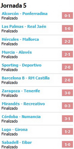 5 – Сцепович (Хихон, 1 с пенальти), Кике (Мурсия, 1 с пенальти)