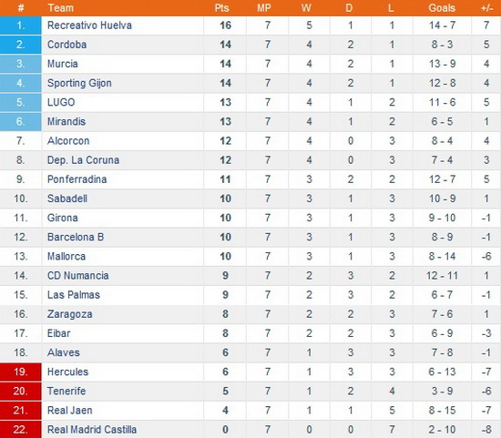 1 – Жирона, Алькоркон, Депортиво, Хихон, Сарагоса, Понферрадина, Алавес, Луго