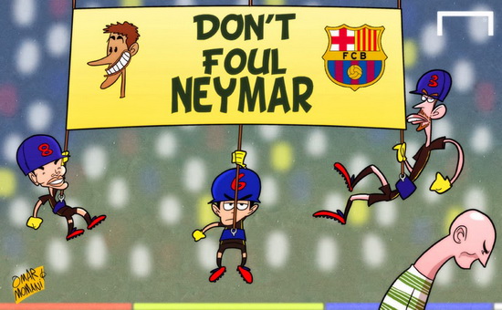 Футболисты Барсы протестуют против фолов на Неймаре.