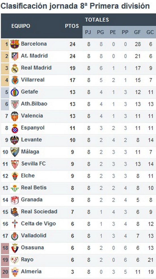 · Последняя команда Ла Лиги, выигравшая 8 раз в 8 стартовых турах – Реал Мадрид призыва 1987/88.