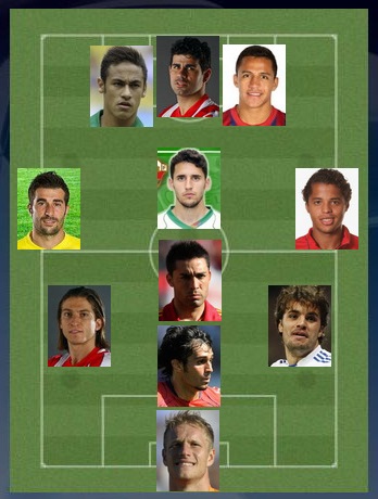 Правый полузащитник. ДЖОВАНИ ДОС САНТОС (Вильярреал, 1).В межсезонье Вильярреал увел мексиканца из-под носа одного из двух своих врагов – Валенсии (вторым в списке ненависти фигурирует Кадис, с которым болельщики ЖПЛ ведут нескончаемый спор о том, какой же испанский клуб на самом деле начал первым использовать прозвище «Желтая подводная лодка»; правильный ответ, кстати – Кадис), о чем, как думается, в Вильярреале не пожалел никто. Умный и вариативный, Д2С выступал правым полушарием мозга Подводников. Записал на свой счет забитый мяч.
