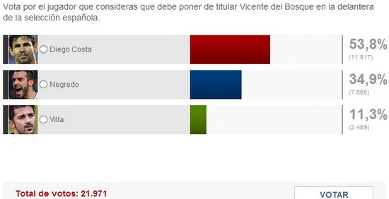 2 – Пепе, Иско, Бэйл, Бензема (все – Реал Мадрид), Сан Хосе (Атлетик), Антунеш (Малага), Габи, Коке, Филипе Луис (все – Атлетико), Педро (Барселона), Кани, Джовани дос Сантос (оба – Вильярреал), Кабальеро (Малага), Педро Леон (Хетафе), Аррибас (Осасуна), Гризманн (Сосьедад), Алекс Лопес (Сельта), Эль-Араби (Гранада)