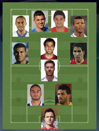 2 – Хонатан Перейра, Бруно Сориано (оба – Вильярреал), Ракитич (Севилья), Вилья (Атлетико), Алекс Лопес (Сельта), Эль-Араби (Гранада), Родри (Альмерия), Педро (Барселона), Вела (Сосьедад), Серхио Гарсия (Эспаньол), Муниаин (Атлетик)