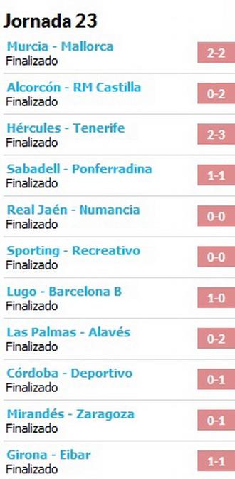 1 – Жирона, Депортиво, Хихон, Сарагоса, Понферрадина, Алавес, Луго, Эйбар, Эркулес, Тенерифе, Барселона-Б, Мальорка