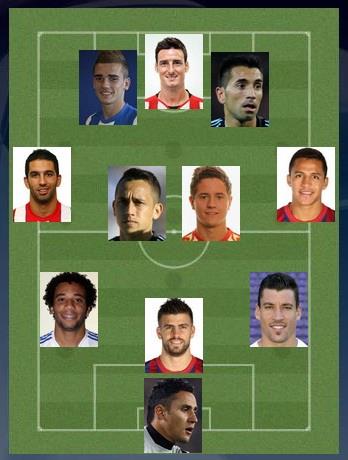 Левый полузащитник. АРДА ТУРАН (Атлетико, 2). Забил два мяча, став сущим кошмаром для своего опекуна Арбильи, защитника Райо Вальекано. Благодаря самоотверженной игре Филипе Луиса мог действовать на чужой половине поля без оглядки на свои ворота. Кстати, воспитанник Галатасарая выстрелил дуплетом в испанской Примере впервые с сезона 2011/12 – тогда он дважды поражал ворота барселонского Эспаньола.