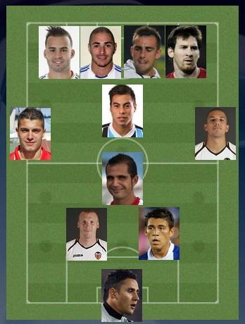 4 – Жонас (Валенсия), Бензема (Реал Мадрид), Ориоль Риера (Осасуна), Месси (Барселона)